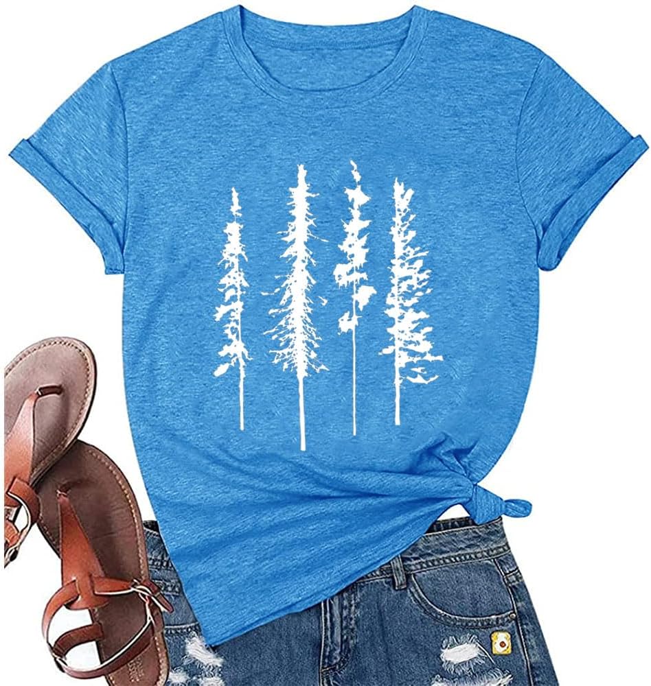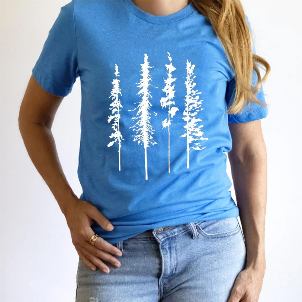 - Features: Pine tree shirts, Evergreen athletic tee, travel shirts for women, tree graphic printed muscle shirt, natural scenery shirt gift, hiking tshirt, natural for women’s workout top, leisure holiday vacation shirt, women’s outdoor clothes.