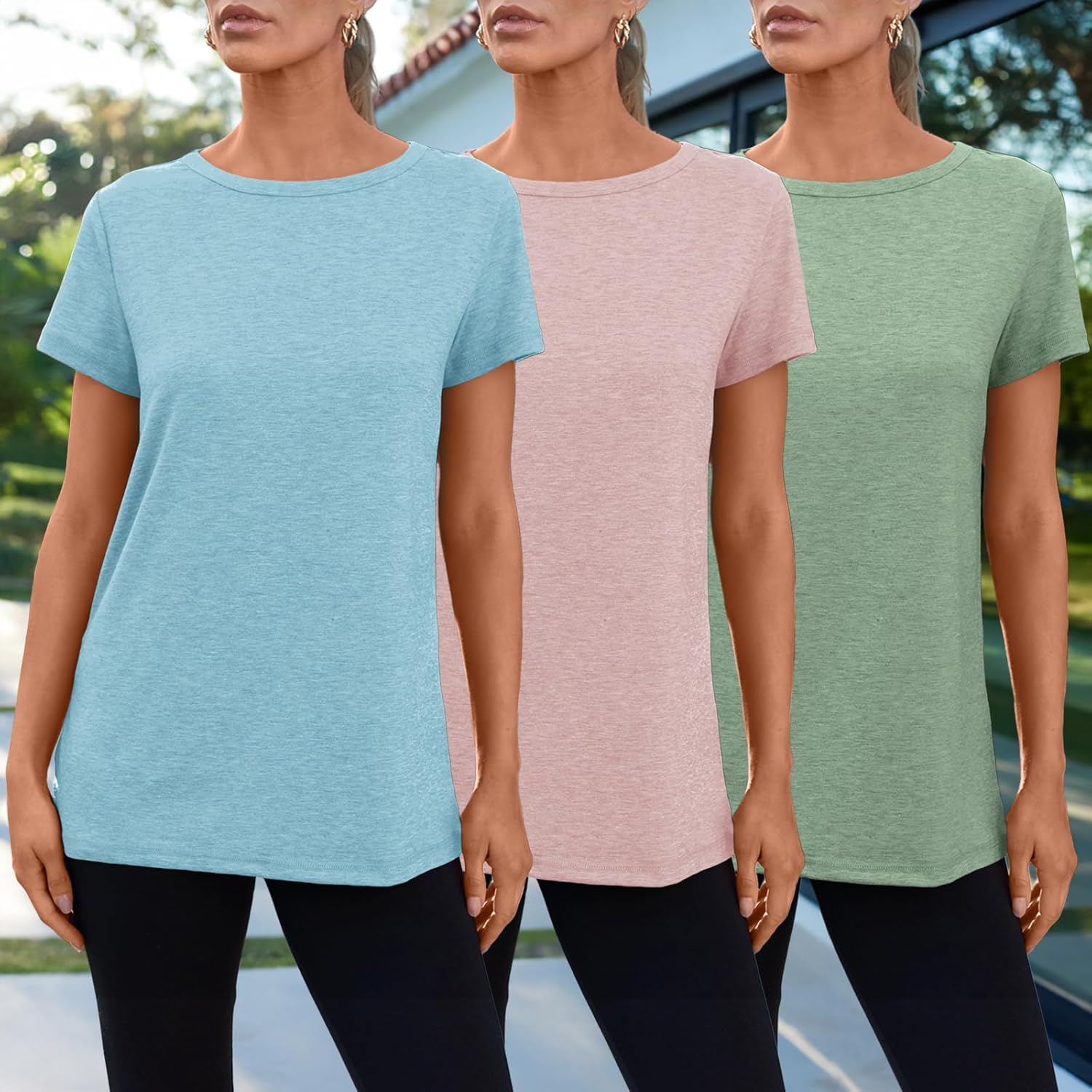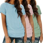 - Match:This womens 3 pack short sleeve tees is easy to match with jeans, shorts, sweatpants, leggings, cago pants. Also can wear as a undershirt and match with casual coat or jacket. Creat a chic and stylish daily look.