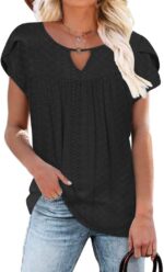 Women’s Casual Dressy Short Petal Sleeve Shirts Pleated Fashion Front Key Hole Scoop Neck Floral Print Loose Fit Tops