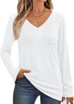 - Features:V neck t Shirts,Chest pockets,Casual workout tops/lounge tops/Soild color/Basic tee/Plain tops for leggings/Everyday Wear,trendy fall winter shirts outfits for women.