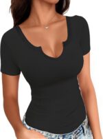 - Style: The V-neck short sleeve top is versatile and easy to style. Wear it with trendy leggings, skirts, skinny jeans, shorts, or booties for a chic look. Dress up with high heels for sophistication. Perfect for casual everyday wear, business casual, parties, dates, or chilling at home. This sexy, slim fit shirt adapts to your mood and style.