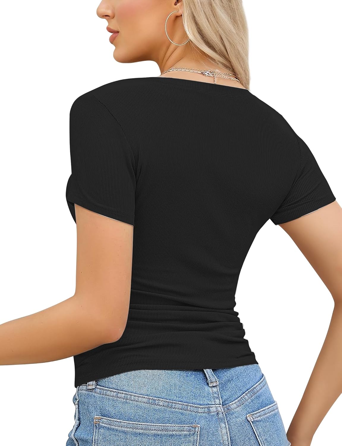 - Premium Fabric: Soft strechy and breathable. Our tops are made from premium fabric for ultimate comfort and a relaxed silhouette. These solid ribbed t-shirts offer sumptuous softness and breathability for a second-skin feel. The inherent stretch of these fitted sexy tees provides an elegant, flattering fit.