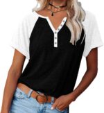 - Colorblock raglan short sleeve t shirts feature in casual short sleeve, sexy and slimming henley neck, loose fit style, cotton summer basic tees, tunic tops to pair with leggings, button up v neck.